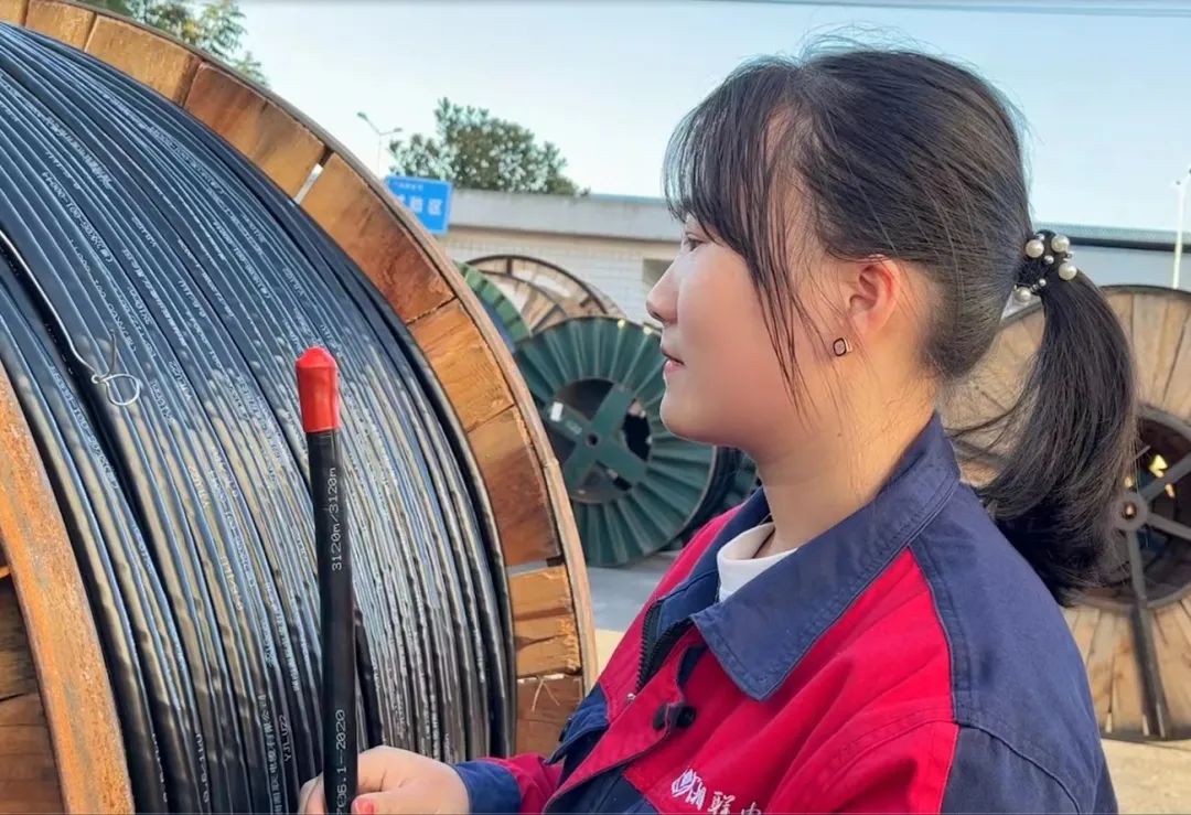 ▲楊祁矞正在為客戶檢查電纜生產(chǎn)情況