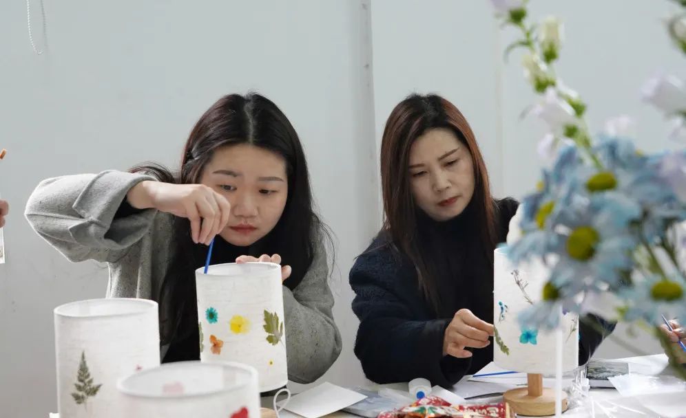 現(xiàn)場歡聲笑語不斷,大家交流著手作技巧,分享著生活趣事,氛圍其樂融融。當(dāng)燈光亮起,柔和的光線透過帶有花朵的燈罩,散發(fā)出溫馨的氣息。