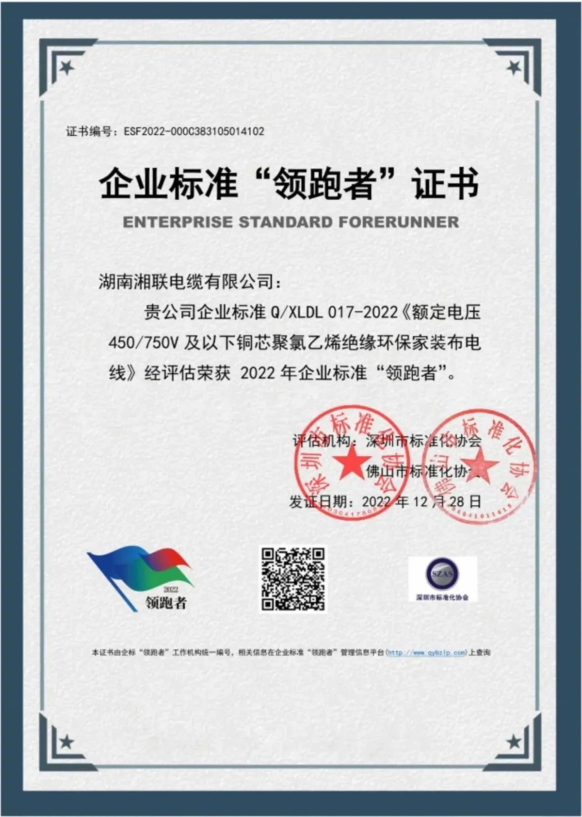 自成立以來,湘聯(lián)電纜以“質(zhì)量是發(fā)展的基石,是客戶信任的唯一理由”為指導(dǎo),將產(chǎn)品質(zhì)量視為企業(yè)生命線,不斷引進(jìn)國內(nèi)一流的電線電纜生產(chǎn)和檢測設(shè)備,以科學(xué)的經(jīng)營管理理念,組建實(shí)力雄厚的技術(shù)研發(fā)和企業(yè)管理團(tuán)隊(duì),建立高標(biāo)準(zhǔn)質(zhì)量管理體系,對生產(chǎn)全過程實(shí)現(xiàn)智能化數(shù)字化管理,公司產(chǎn)品先后通過國家強(qiáng)制性產(chǎn)品認(rèn)證(CCC認(rèn)證),榮獲企業(yè)標(biāo)準(zhǔn)“領(lǐng)跑者”等榮譽(yù)稱號,獲得用戶的廣泛認(rèn)可。