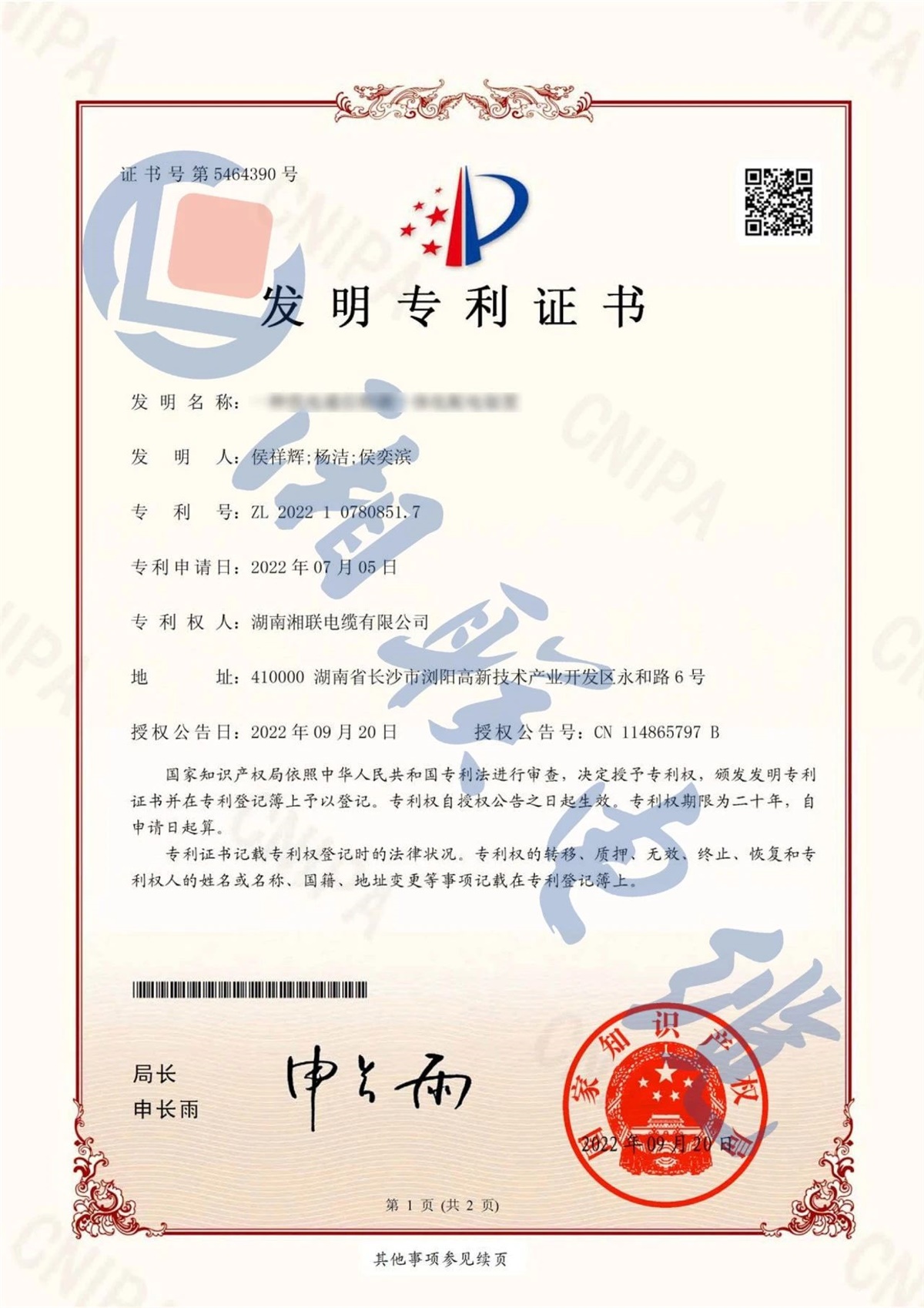 自湘聯(lián)電纜成立以來,公司研發(fā)了一系列具有自主產(chǎn)權(quán)的專利,累計申請專利50余項,多次參與編寫國家標(biāo)準(zhǔn)和團體標(biāo)準(zhǔn),多款產(chǎn)品企業(yè)標(biāo)準(zhǔn)獲評國家“企業(yè)標(biāo)準(zhǔn)領(lǐng)跑者”稱號,企業(yè)的技術(shù)實力和核心競爭力不斷提升。2023年,公司被評為“湖南省省級企業(yè)技術(shù)中心”。