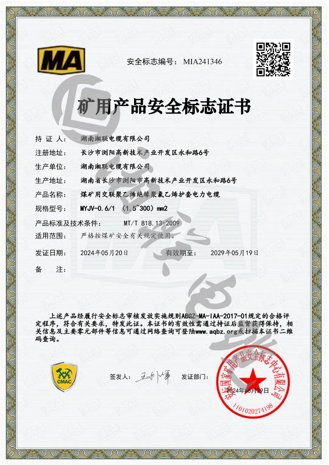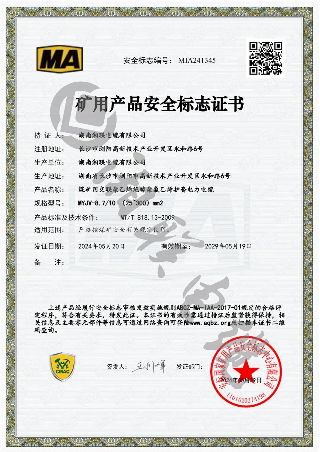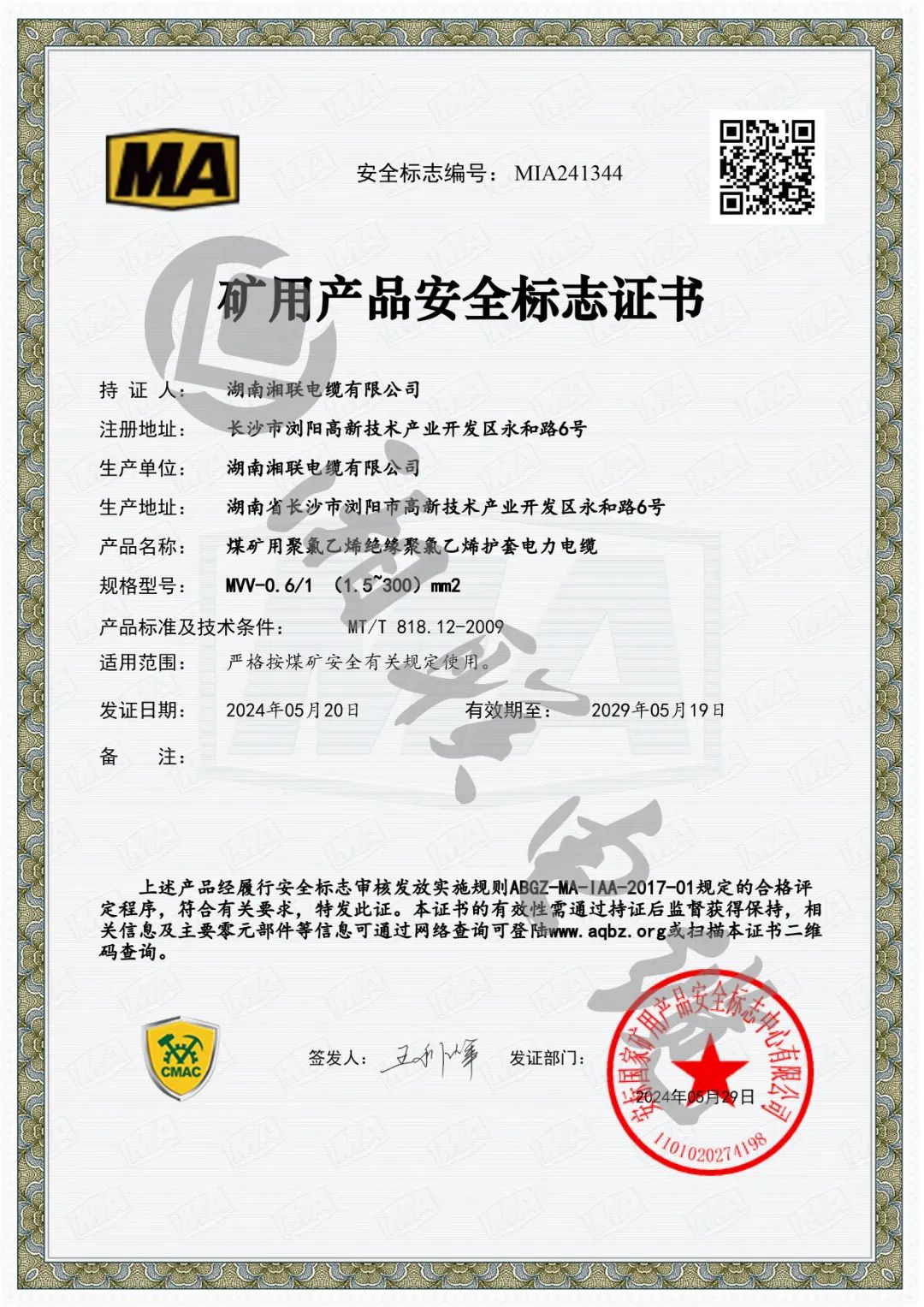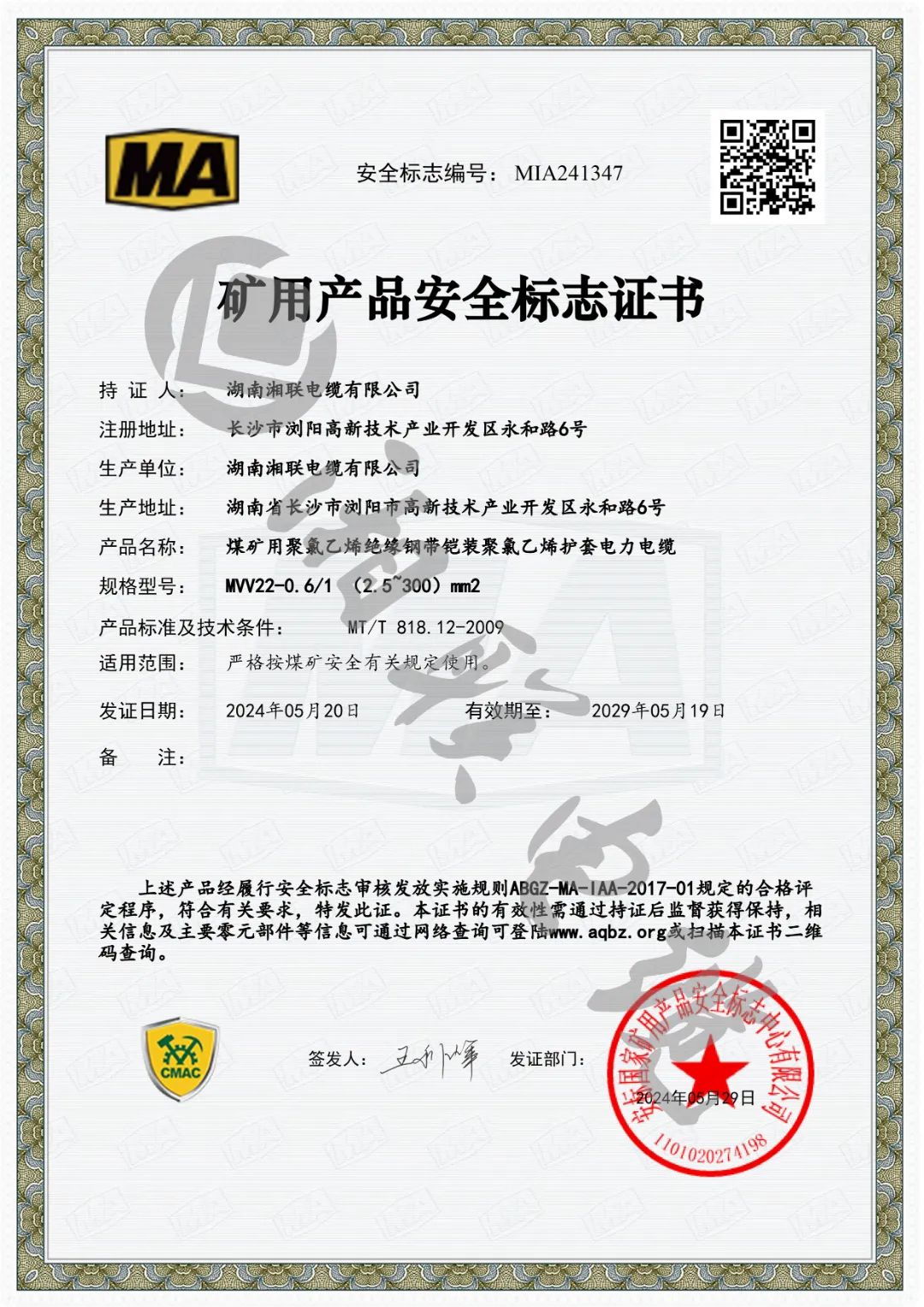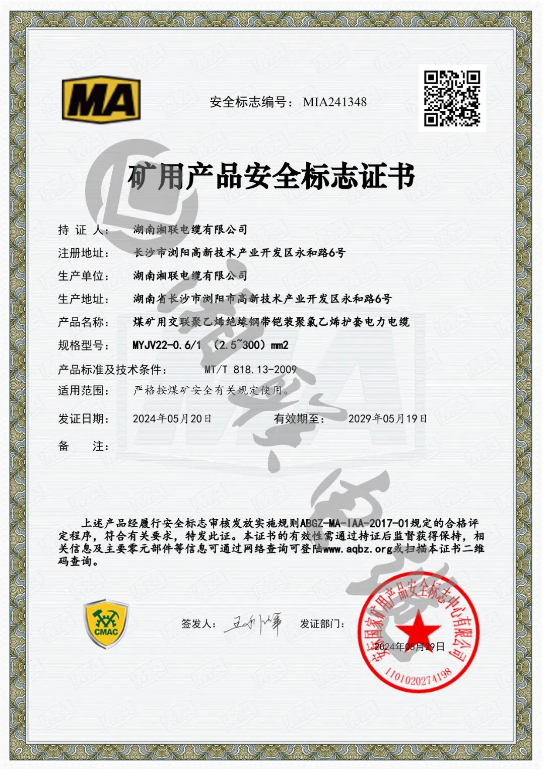 此次獲批礦用產(chǎn)品安全標志證書是對湘聯(lián)電纜產(chǎn)品品質和企業(yè)綜合實力的最佳認證之一。自成立以來,湘聯(lián)電纜始終堅持嚴把產(chǎn)品質量關,持續(xù)優(yōu)化科技創(chuàng)新體系,公司產(chǎn)品已廣泛應用于電力、石化、建筑、交通等多個行業(yè),企業(yè)先后通過國家強制性產(chǎn)品認證、“三位一體”管理體系認證、武器裝備質量管理體系認證等國家和行業(yè)的專業(yè)認可,獲得用戶廣泛贊譽。未來,湘聯(lián)電纜將繼續(xù)加強科技創(chuàng)新力度,不斷提升產(chǎn)品核心競爭力,持續(xù)以安全優(yōu)質的產(chǎn)品服務市場,為公司高質量發(fā)展注入新動能。